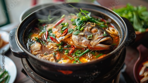 Photograph of the Vu Dai fish stew village in northern Vietnam. This is traditional food in Vietnam. This is the traditional food on the Tet holiday in Vietnam.