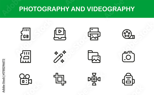 Photography and Videography Simple Icon Set. Minimal and Unique icons for media, editing, and filming