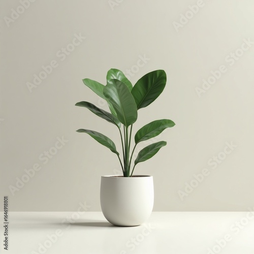 Photorealistic single green plant in modern pot, neutral tones, minimalist decor
