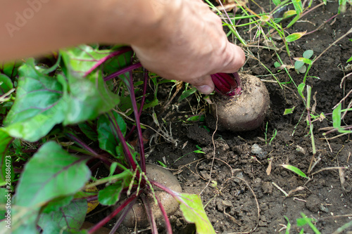 pick up red beets grown manually in the garden