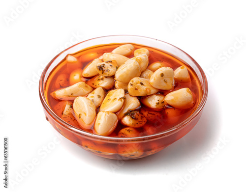 Pickled Garlic, Fermented Garlic Cloves with Red Chili Pepper, Hot Pickle Vegetable, Spices Garlic Cloves