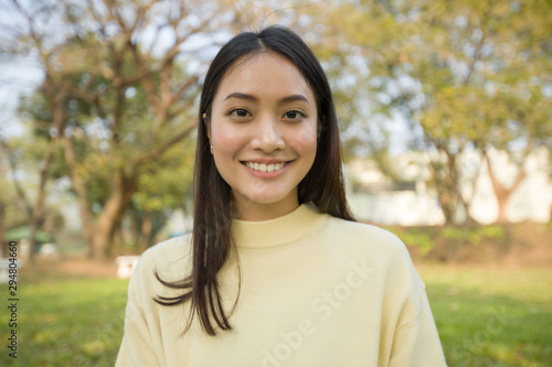 Picture of Smiling beautiful Asian girl at the park in summertime