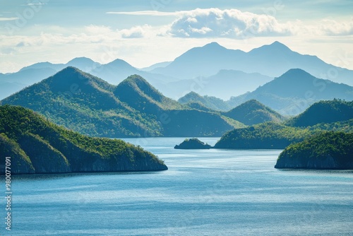 Picturesque coastline and island mountains Palawan Philippines
