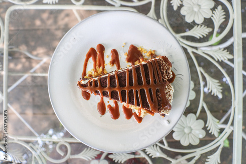 Piece of banoffee cake with caramel toping