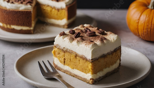 piece of pumpkin tiramisu on a plate