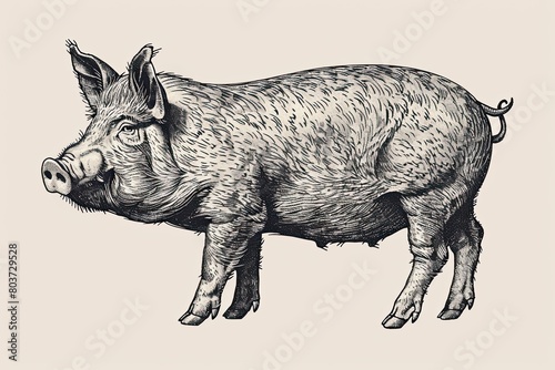 Pig illustration clear thick black outlines line art no missing arms no missing legs style raw vector lines