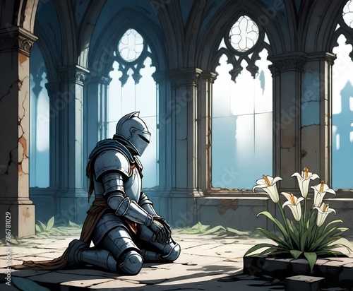 pikaso texttoimage In the quiet of a ruined chapel a knight in rusted - 4