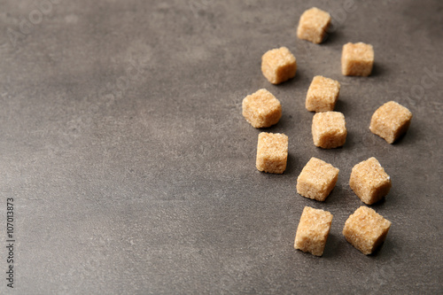 Pile of brown sugar cubes on the table