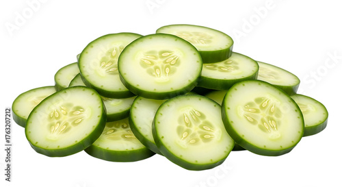 Pile of fresh cucumber slices isolated on transparent background
