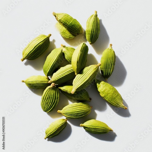 Pile of green cardamom pods isolated on white background