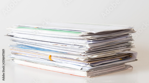 Pile of mails on white background