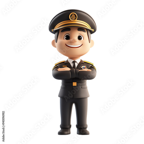 Pilot in uniform with a flight cap 3D illustration on transparent background