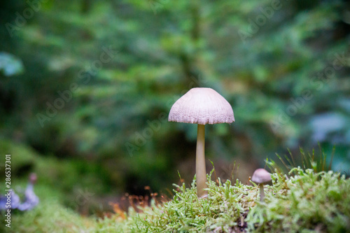 Pilz auf einem moosigen Waldboden