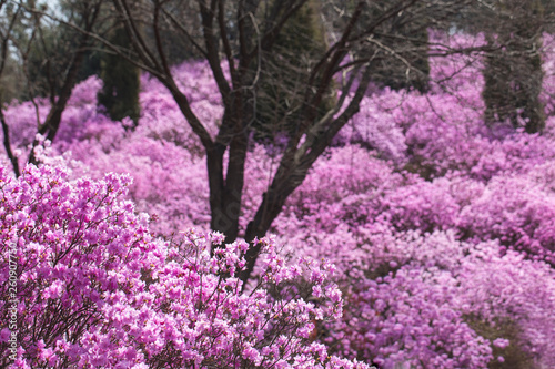Pink azalea bush. Spring flowers background.