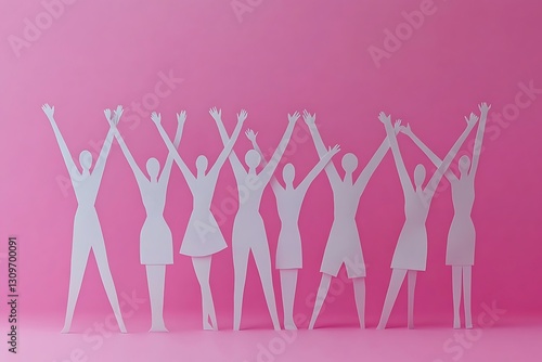Pink Background Paper Cutout Figures Celebrating Unity