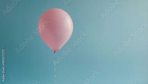 Pink balloon floating in the air against a light blue background, minimalistic composition