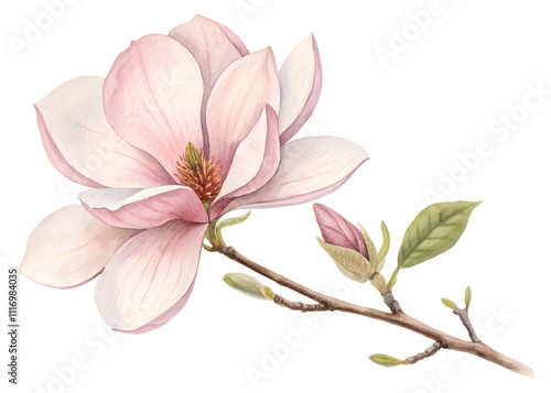 pink blossom flower watercolor set illustration cut out isolated on white background