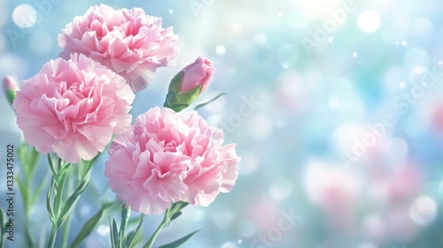 Pink Carnation Blossoms Blooming with Soft Light and Bokeh Effect