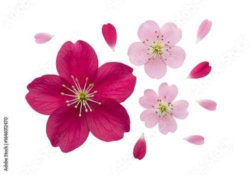 Pink Cherry Blossom Flowers and Petals Realistic PNG Cut Out.