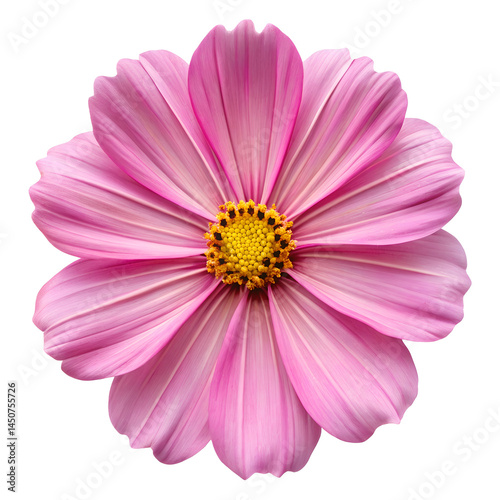 pink cosmos flower vibrant petals yellow center. Generative AI