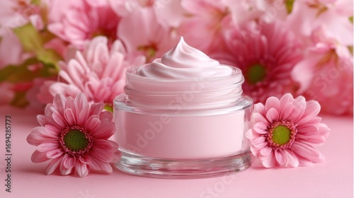 Pink cream jar with flowers