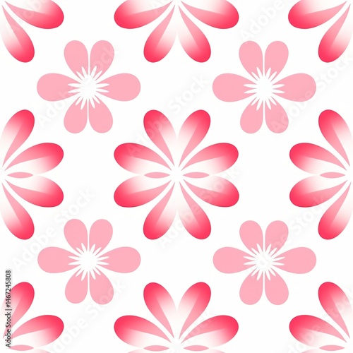 Pink floral seamless pattern with gradient petals on white background. Feminine design for fabric, wallpaper, or gift wrap. Elegant repeat print for Valentine's day or spring decor.