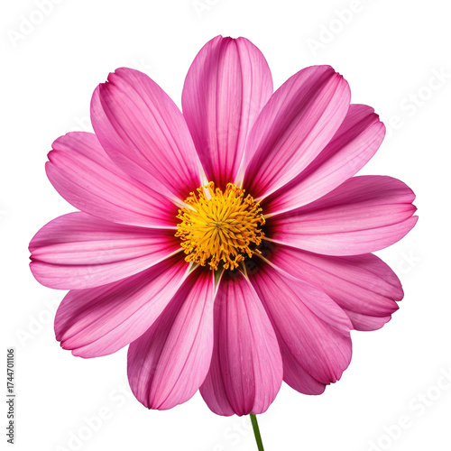 Pink flower blossom with yellow center. Delicate petals radiate outwards