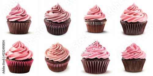 Pink Frosting Chocolate Cupcakes - Delicious chocolate cupcakes topped with light pink frosting, perfect for celebrations, parties, or a sweet treat. Symbolizing joy, sweetness, celebration