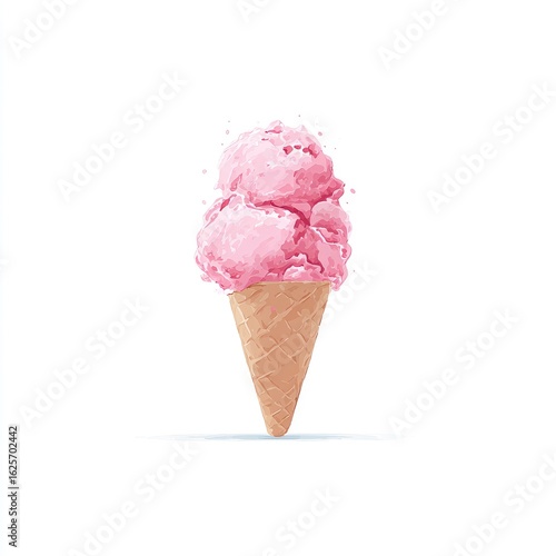 Pink ice cream cone, fluffy texture