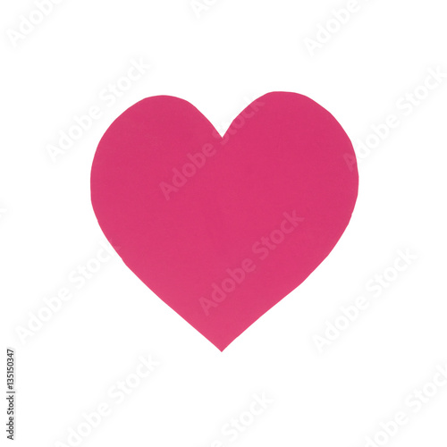 Pink paper heart isolated on white background