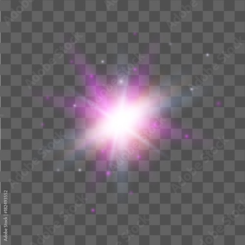 Pink star light effect on transparent background. Glow light effect. Vector