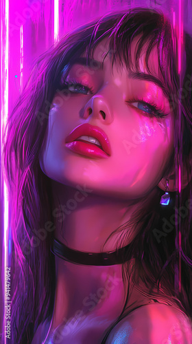 Pink Synthwave Girl in Anime Manga Art Style Stunning Wallpaper
