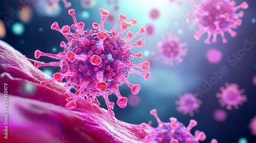 Pink Virus Cell Attacking, Microscopic View, infection , pandemic