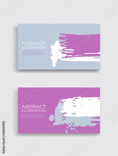 Pink white gray ink brush stroke card on white background. Japanese style.
