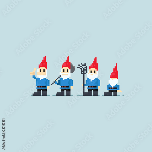 Pixel gnomes gang.8 bit character.