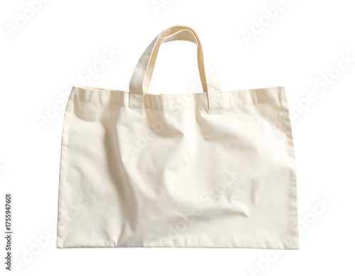 Plain, rectangular canvas tote bag, isolated on black background, with two handle straps