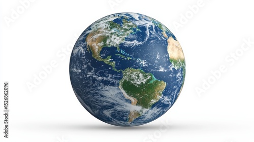 Planet Earth globe world map continents oceans atmosphere clouds isolated on white background global international world earth day environment ecology climate change geography travel world map 3D