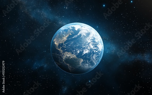 Planet Earth on a techdriven background filled with global data and information, leaving plenty of space for text, logo, or branding