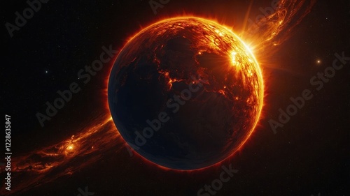 planet, space, sun, earth, light, astronomy, star, solar, universe, galaxy, globe, eclipse, world, illustration, stars, science, atmosphere, fire, night, moon, glow, dark, sunrise, sphere, cosmos