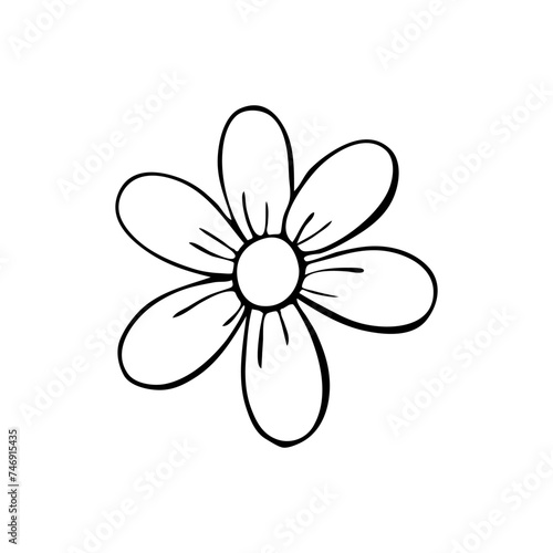 Plant design element.Simple vector doodle flower on isolated white background.Top view.Hand drawn with black outline.