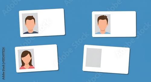 Plastic cards with male and female photo isolated on white background. ID cards or car driver licenses