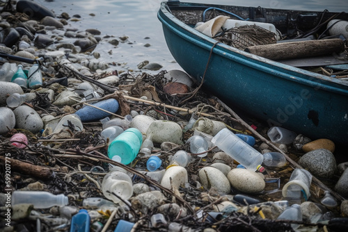 Plastic Pollution in Sea Water Environmental Disaster. Ai generated