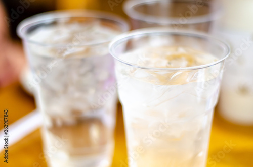 Plastic tumblers of water