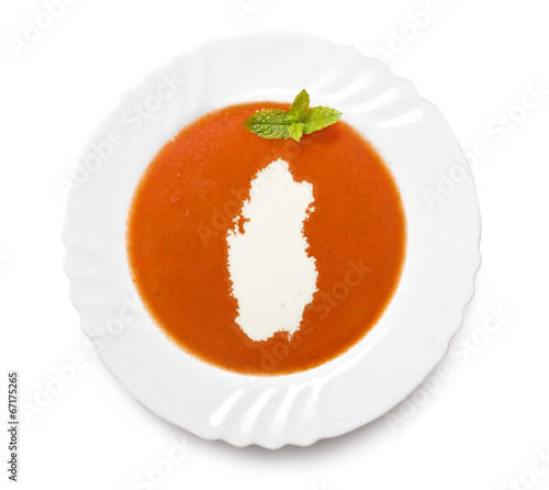 Plate tomato soup with cream in the shape of Qatar.(series)