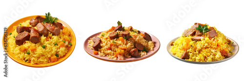 Plate with yellow rice meat and carrots