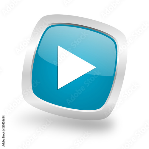 play square blue glossy chrome silver metallic web icon