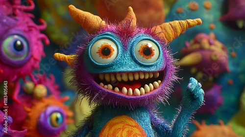 Playful and colorful imaginary monsters in a children's animation world