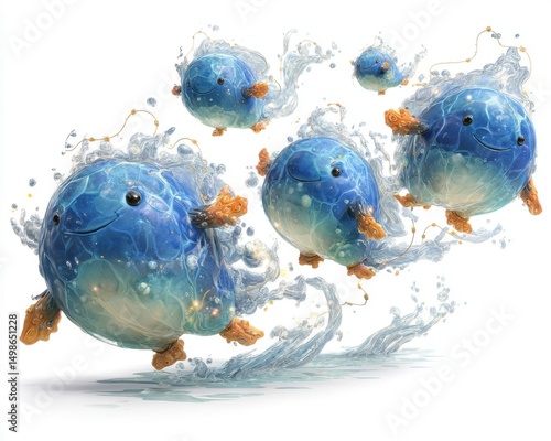 Playful Blue Water Creatures Splashing