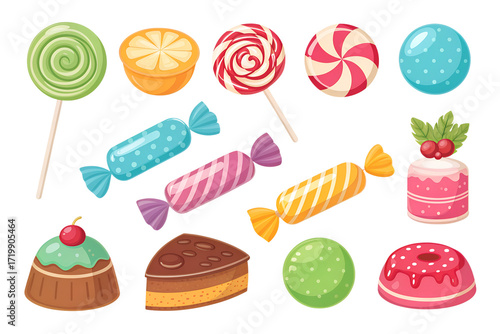 Playful Candy Icons Set PNG – Bright Colorful Sweets and Desserts Isolated on Transparent Background