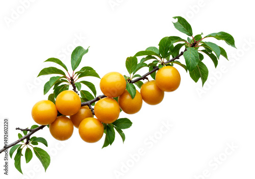 Plum branch with ripe fruit on white background